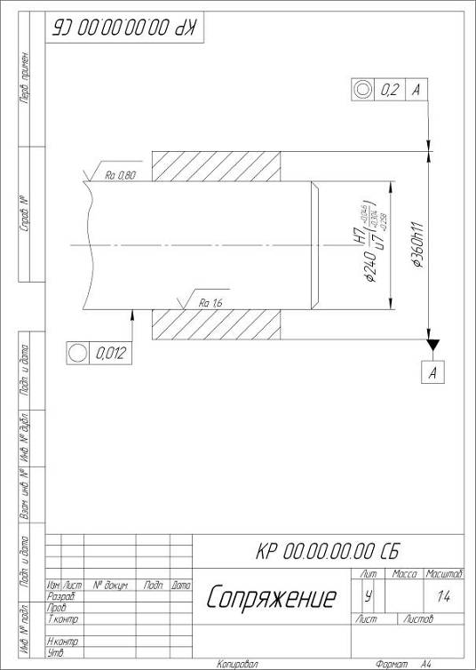 - внутренний диаметр соединения. Посадка в значении не проставляется, так как в знаменателе поле допуска отсутствует;