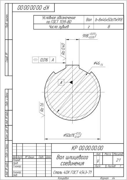 Запишем обозначения для шлицевого