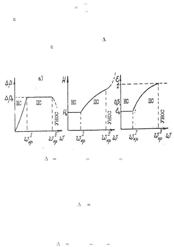 псевдоожижения) слой остается неподвижным (НС) и ожижающий агент движется через слой в режиме фильтрации. При достиже-