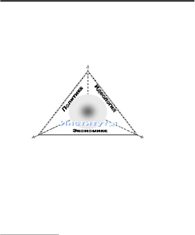 тип любого общества, а именно – "институциональная матрица"1. Матрица в переводе с латинского означает "матку", основу, первичную исходную модель, форму, порождающую дальнейшие последующие воспроизведения чего-либо. Соответственно, институциональная матрица общества означает первичную модель базовых институтов, т.е. связанных между собой экономических, политических и идеологических институтов, находящихся во взаимно однозначном соответствии (рис. 2).
