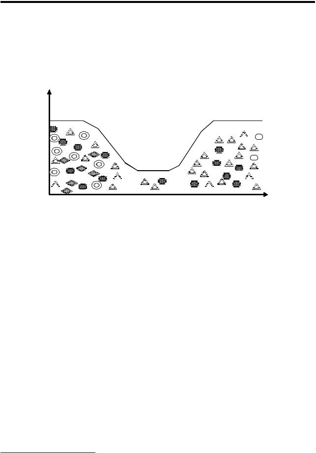 Момент радикальной трансформации того или иного экономического порядка приводит к так называемому трансформационному кризису [19]. Во время этого кризиса резко сокращается количество обменов в экономике и происходит так называемая деинституционализация. Следовательно, момент перехода от одного экономического порядка к другому аналогичен эффекту бутылочного горлышка в биологии и, следовательно, может быть назван таким же эффектом при описании экономических процессов. Институты, которые остаются от старого порядка и первыми создаются для нового, т.е. существуют в начальный момент развития новой экономической системы и приобретают особое значение для дальнейшего развития этой системы. Здесь вступает в действие эффект основателя. Следовательно, очень трудно изменить вектор экономического развития системы, только что прошедшей через бутылочное горлышко. Если набор институтов вследствие случайных или незначительных1 исторических событий оказался сравнительно неэффективным (в смысле эффективности рыночного процесса), то система будет воспроизводить эти