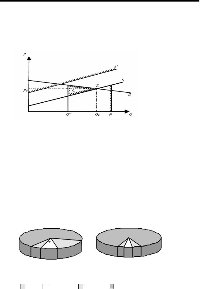 Под воздействием недопустимо высоких для низкопродуктивного рынка наценок линия предложения товара S сдвигается в S+, и жизненно необходимый покупателям объем покупок товара Q– оказывается недостижимым. При этом чем ýже область допустимых вариаций цен спроса и предложения, тем при меньших наценках это произойдет. В России же по вышеотмеченным обстоятельствам эта область весьма узка, а доля торговли в удельных затратах на производство ВВП в 2 раза выше, чем