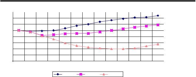 Рис.2. Сравнительный анализ изменения ВВП в Украине, Польше, Венгрии за период 1990-2002 гг.