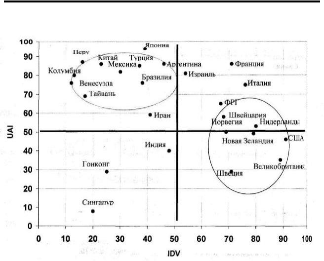 ∙для IDV – 50-60 пунктов, данная оценка достаточно надежна, хотя возможны отклонения в сторону более высоких оценок;
