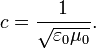 Скорость электромагнитного излучения в вакууме (скорость света) в СИ появляется при выводе волнового уравнения: