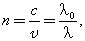 показателем преломления где с скорость света в вакууме; v1 cкорость света в первой среде. Аналогично для n2. Отношение n2 / n1 = n21 называют относительным показателем преломления второй среды относительно первой |