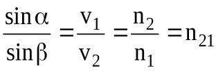 Если скорость распространения света в первой среде v1, а во второй v2,