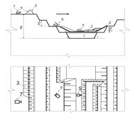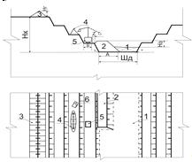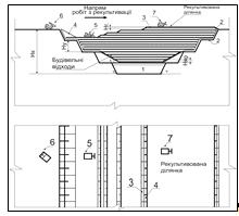 відходів, 2- тимчасові навали, 3 - грейфер, 4- драглайн, 5 - висота відходів, 6