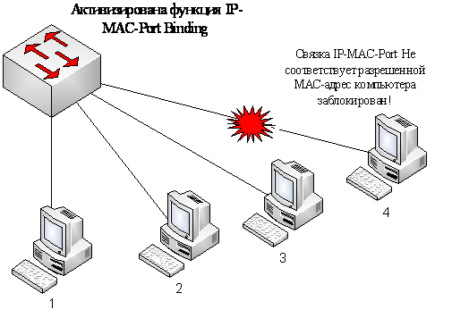 Функция IP-MAC-Port Binding (IMPB), реализованная в коммутаторах D-link, позволяет контролировать доступ компьютеров в сеть на основе их