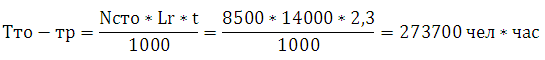Где Nсто- число автомобилей, обслуживаемых проектируемой СТО в год;r- среднегодовой пробег автомобиля, км;удельная трудоемкость работ по ТО и ТР, чел. ч/1000км.