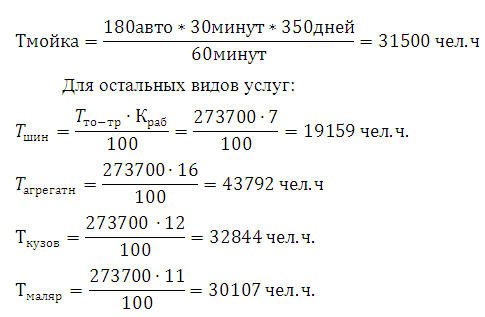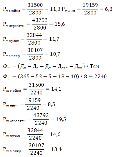 При этом под условным автомобилем парка понимается автомобиль, комплексно обслуживаемый на СТО в течение года, на котором выполняется полный комплекс работ по ТО и ремонту, обеспечивающий его исправное состояние. Расчетно принимаем, что условный автомобиль парка должен сделать в течение года в среднем 2 автомобиле-заезда на СТО.