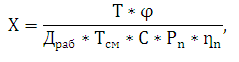 работающих на посту (0,9…1,1); n- коэффициент использования рабочего