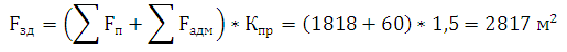 сумма площадей административно-бытовых, клиентских и складских помещений; Кпр-