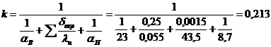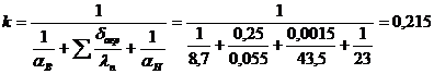 =8,7- коэффициент теплоотдачи внутренней поверхности,