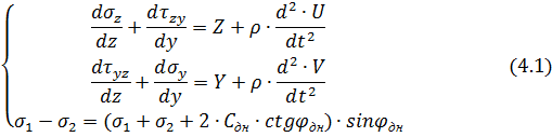 состоит из уравнений движения грунтовой среды и условия предельного равновесия