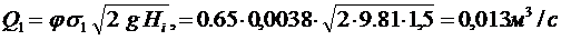где j = 0,65 - коэффициент истечения жидкости через отверстие;