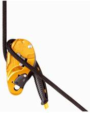 Самоблокирующееся спусковое устройство. Устройство должно работать со всеми одинарными динамическими и статическими веревками от 10,5 до 11,5 мм[9]. Многофункциональная рукоятка позволяет разблокировать веревку и контролировать скорость спуска, удерживая рукой свободный конец веревки, либо зафиксировать свое положение на веревке без дополнительных блокирующих узлов. Система автоматического возврата рукоятки сводит к минимуму риск падения в случае непроизвольных или ошибочных действий со стороны пользователя. Специальное положение рукоятки на время хранения и переноски делает устройство наиболее компактным. Защелка-предохранитель на подвижной боковой пластине помогает предотвратить случайное выстегивание устройства и облегчает установку устройства на веревку и прохождение промежуточных точек страховки. Поворотный эксцентрик позволяет легче выбрать слабину веревки. RIG также может использоваться для организации полиспастов и для коротких подъемов по веревке. Вес: 380 г.
