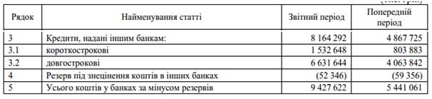 Кредити надані Приватбанком іншим банкам (тис.грн.)