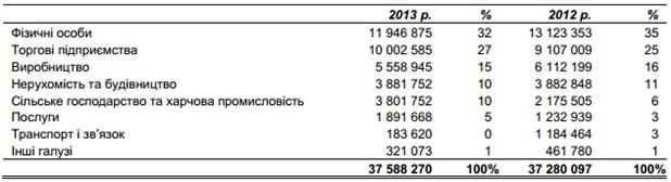 протягом 2013 року видав кредитів на суму 37 588 270 тис. грн. (Табл.2. 7.)