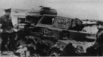 Подбитый немецкий танк, который пытался войти в