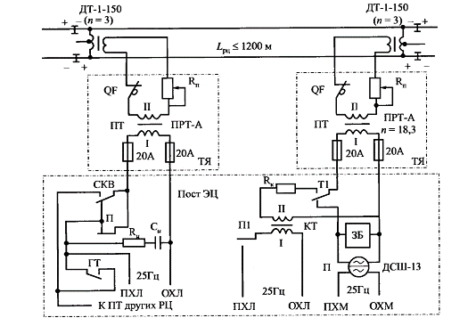 За основу построения схемы РЦ принимается схема фазочувствительной двухниточной