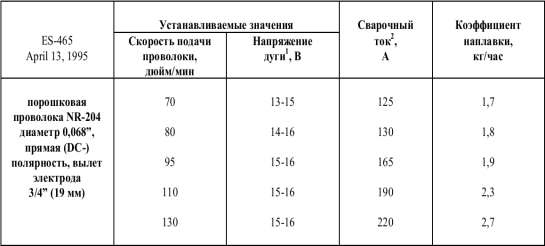 Таблица 3.- Параметры режимов при сварке самозащитной порошковой проволокой