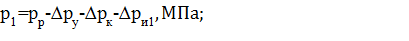 давления в редукционном клапане, МПа;