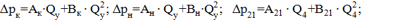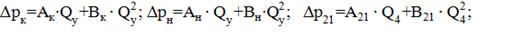 аппроксимирующих зависимостей потерь давления в линиях от расхода можно