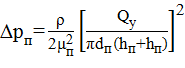 инерционные перепады давления в напорной линии (н-3) и линиях, присоединенных