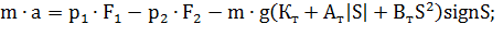 m·a = P1·F1 - P2·F2 - T, (3.1)