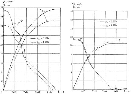 запаздыванием срабатывания редукционного клапана, а также падение давления в полостях