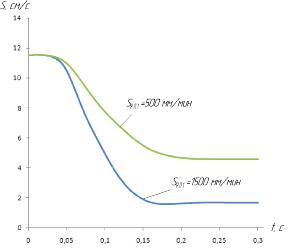 были проведены исследования влияния параметров гидропривода на его динамические характеристики. Исследования показали, что применение гидроустройства с автоматическим регулятором позволяет сократить разброс координаты остановки рабочего органа, наибольшее влияние на динамические характеристики оказывает форма рабочего элемента управляющего устройства, скорость установившегося движения.
