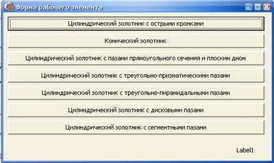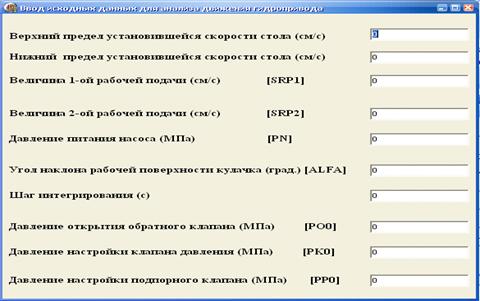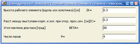 . Выбрав форму рабочего элемента, вводим данные для анализа движения ГП,