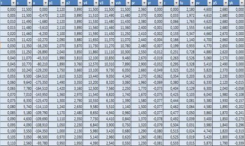 Рисунок 6.11 - Фрагмент таблицы, результатов расчета