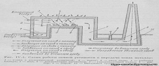 Рис.2.1 Схема работы печной установки и передачи тепла металлу