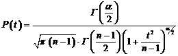 вероятности распределения P(t), соответствующая закону Стьюдента, имеет вид: