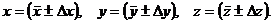 по переменным x, y, z соответственно, вычисленные для их средних значений.