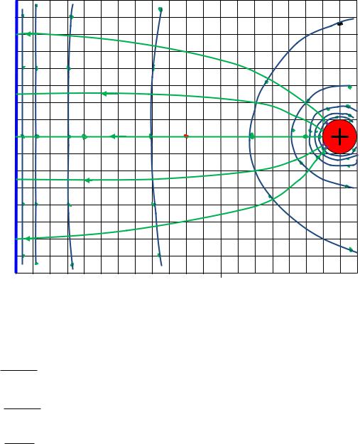 Электростатическое поле удобно изображать графически в виде силовых линий и эквипотенциальных поверхностей. Условились силовые линии электрического поля проводить таким образом, чтобы касательная к силовой линии в данной точке совпадала с направлением вектора напряженности электрического поля в данной точке, а число силовых линий, приходящихся на единичную перпендикулярную к ним площадку, равнялось модулю вектора E.