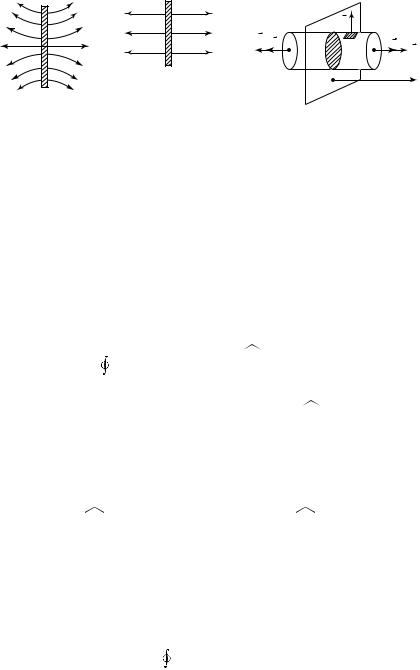 Eсли рассмотреть точки пространства, расположенные настолько близко к пластине, что расстояние от них до пластины существенно меньше, чем до ее границ (из этих точек пластина будет представляться как бесконечно большая плоскость), то искривлением силовых линий у границ пластины можно пренебречь (рис. 17.9). Таким образом, большая заряженная пластина площадью S создает однородное поле. Ввиду симметричности системы модуль напряженности поля во всех точках, равноудаленных от пластины, должен быть одинаковым,