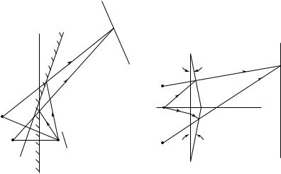 1. Два зеркала, образующих угол, близкий к 180о (рис. 27.7), называются бизеркалами Френеля. Интерферирующие лучи, отраженные от зеркал, когерентны. Все происходит так, будто есть два источника когерентных волн, расположенных симметрично источнику S относительно зеркал (мнимые источники S ′ и S ′′ ).