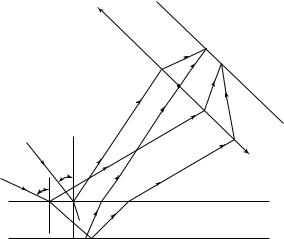 ференционную картину можно наблюдать, поставив на пути отраженных лучей тонкую линзу. Такие линзы — таутохронны (они не вносят дополнительной разности хода для параллельных лучей, падающих на линзу). Кроме того, линза собирает параллельные лучи в своей фокальной плоскости. Если в этой плоскости поместить экран, то именно на нем можно наблюдать чередование темных и светлых полос. Такая интерференционная картина получила название полос равного наклона.