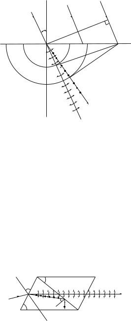 образуют необыкновенный луч. Колебания вектора E в необыкновенном луче в зависимости от направления распространения в кристалле составляют различный угол с оптической осью. Поэтому в различных направлениях этот луч будет распространяться с различной скоростью. В частности, для положительного кристалла (рис. 28.2) (в котором скорость необыкновенного луча меньше скорости обыкновенного ve < vo , и показатель преломления необыкновенного луча больше показателя преломления обыкновенного луча: ne > no ), ско-