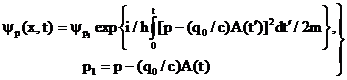Теперь, в отличие от обычной теории возмущений, вычисляется вероятность перехода электрона из начального состояния не в стационарное конечное состояние, а в состояние типа (68). При этом точно учитывается основной эффект действия сильного поля на свободный электрон; поправка же, связанная с несвободным характером движения электрона, вводится в окончательном результате.