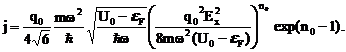 Формула (81) описывает фотоэффект с поглощением n0 » (U0- -eF)/ħw квантов. Она тем более точна, чем больше число квантов n0. Однако, как показывает сравнение с вычислениями по теории возмущений, даже при n0 = 2 ошибка формулы (82) сравнительно невелика.