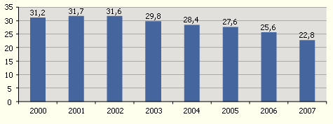 Во-вторых, финансовое состояние Пенсионного фонда России характеризуется все возрастающим дефицитом, который пока покрывается за счет государственного бюджета. Это фактически означает, что дополнительные расходы пенсионной системы покрываются за счет других налоговых поступлений - сегодняшние работники платят пенсии сегодняшним пенсионерам. Таким образом, с течением времени пост реформенная пенсионная система откатывается все дальше к своим историческим проблемам.