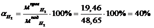 водорода, % мас. от стехиометрии