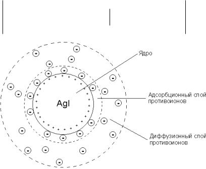 Рис. 1. Строение коллоидной мицеллы йодида серебра, стабилизатор нитрат серебра