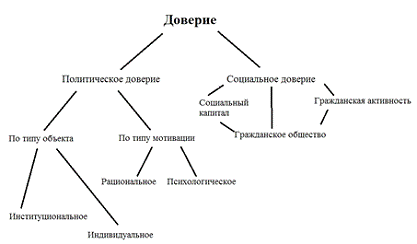 В свою очередь, организационное политическое доверие разделяется на два подтипа: