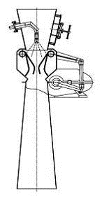 Вторая ступень труб Вентури состоит из двух прямоугольных регулируемых труб Вентури с закругленными створками сечением горловины 2000х400 мм (в пережиме). В каждой трубе Вентури установлено по 8 центробежных форсунок ФВК-25 с полным факелом распыляемой жидкости, расположенных на расстоянии 250 мм друг от друга. Форсунки полностью перекрывают сечение горловины трубы Вентури и расположены на высоте 760 мм от пережима. В каждой регулируемой трубе Вентури на двух валах закреплены регулировочные створки криволинейной формы (рис 1.2). С помощью гидравлической системы маслостанции осуществляется дистанционное управление гидроцилиндром с пульта управления дистрибуторной, а также с пульта маслостанции [2].
