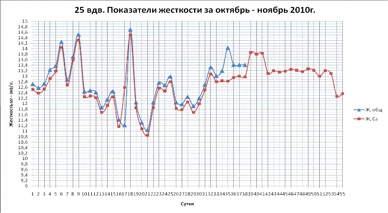 (Са2+) =12,62 мг-экв/дм3, щелочности - 1,6 мг - экв/дм3